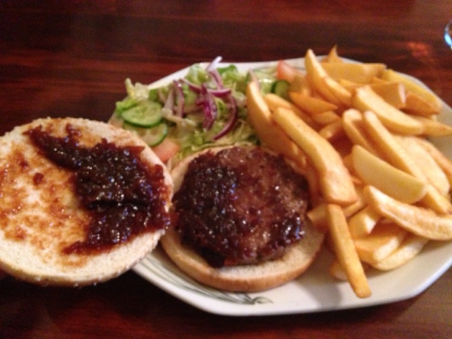And, where I was eating the Lamb burger with red onion chutney, with chips and salad, there was another man to join the ranks of twin-age, multiple look-a-likes.